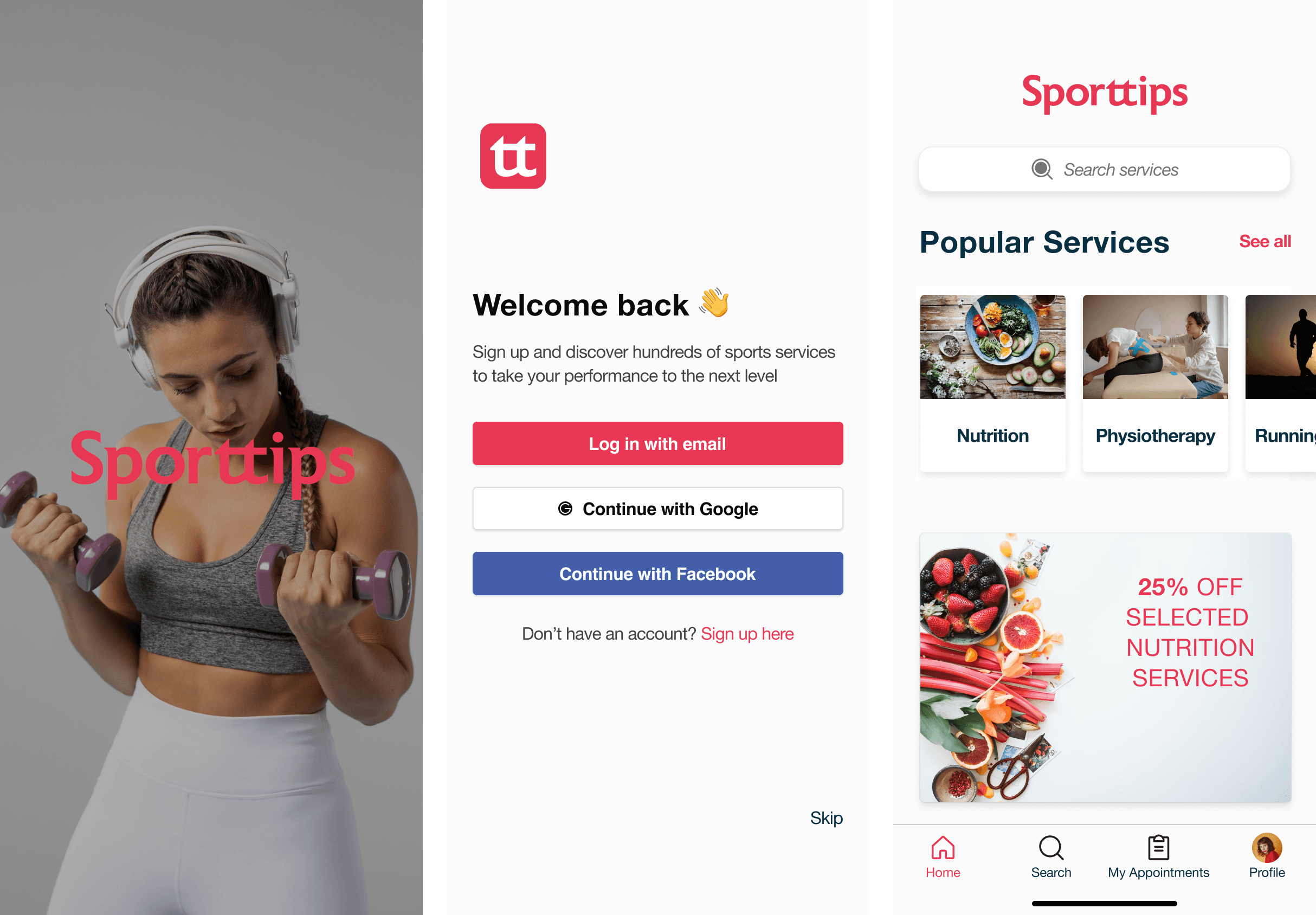 We looked at several potential competing products and companies to see what their strengths and weaknesses are. Sporttips has the opportunity to capitalise on bringing together sports services of all kinds to create a one-stop shop for athletes of all levels.