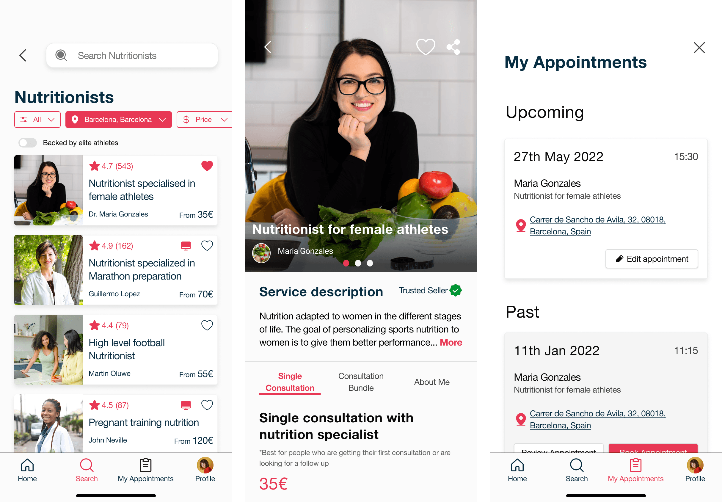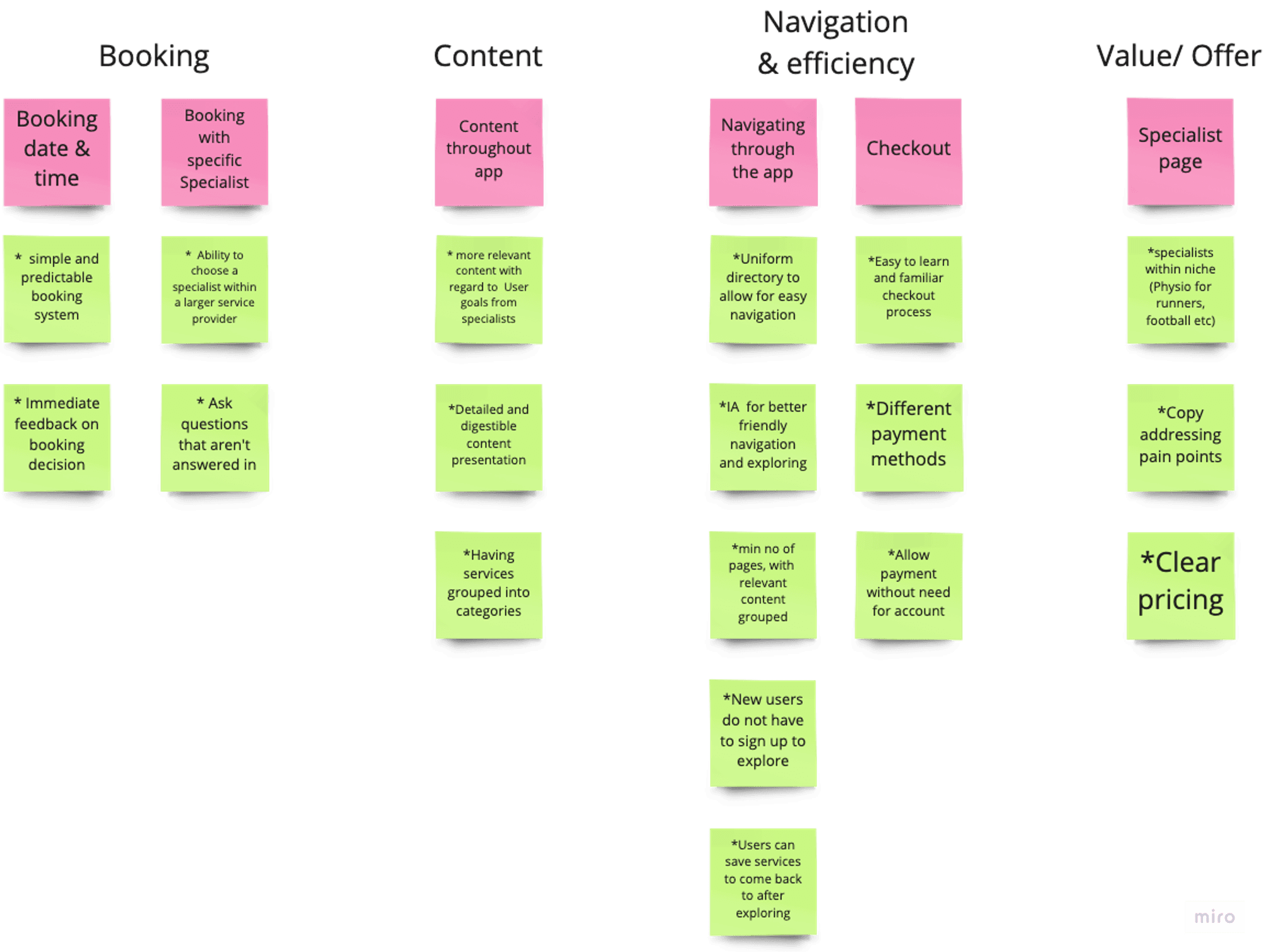 The majority of the features between competitors were very similar, however the main downfalls in the journey of finding a sports specialist that we noticed were:
